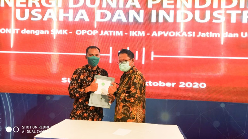 Surabaya, Rabu (28/10) – PT Maspion IT dengan SMK se-Jawa Timur salah satu sekolah yaitu SMK NU 1 Kedungpring juga sedang melaksanakan penandatangan nota kesepahaman sinergi dunia pendidikan, usaha dan industri. Selain diikuti oleh 300 SMK di provinsi Jawa Timur, penandatanganan MoU ini juga melibatkan OPOP (One Pesantren One Product), IKM (Industri Kecil Menengah), dan APVOKASI Jawa Timur (UBAYA dan UNTAG). Kegiatan tersebut dilaksanakan di Maspion IT, jalan Ahmad Yani no. 73 Margorejo Surabaya pada pukul 13.00 hingga selesai. Kegiatan tersebut juga dihadiri oleh gubernur Jawa timur, Dra. Hj. Khofifah Indar Parawansa, M.Si.