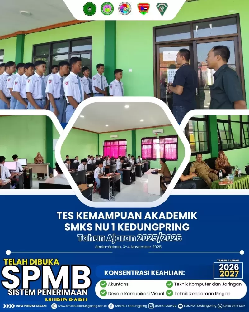 Pelaksanaan Tes Kemampuan Akademik (TKA) di SMKS NU 1 Kedungpring pada tanggal 3-4 November 2025 berlangsung dengan sukses, lancar, dan tertib. Kegiatan ini merupakan bagian dari upaya sekolah dalam mengukur capaian kompetensi akademik peserta didik serta meningkatkan kualitas proses pembelajaran di lingkungan sekolah.